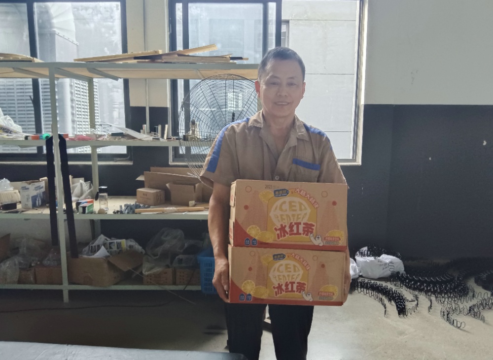 漢林公司每位員工在領(lǐng)到了毛巾和香皂的基礎(chǔ)上,710領(lǐng)到了每人二箱的冰紅茶。