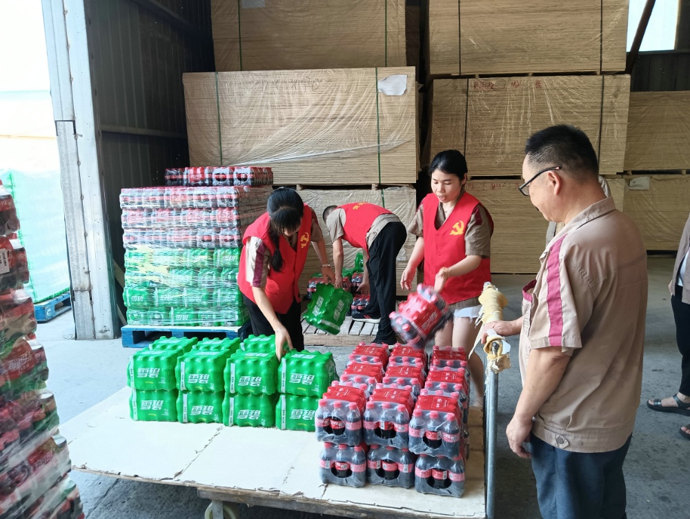 712日恒森公司黨員們利用中午時間,將夏日福利——每人一箱可樂、一箱雪碧分發(fā)給員工。