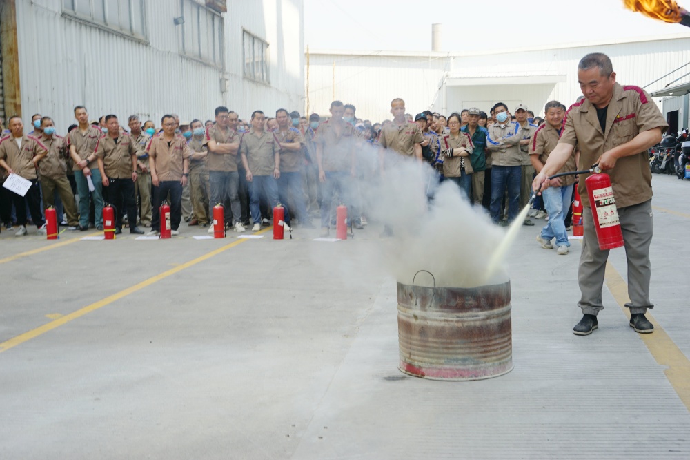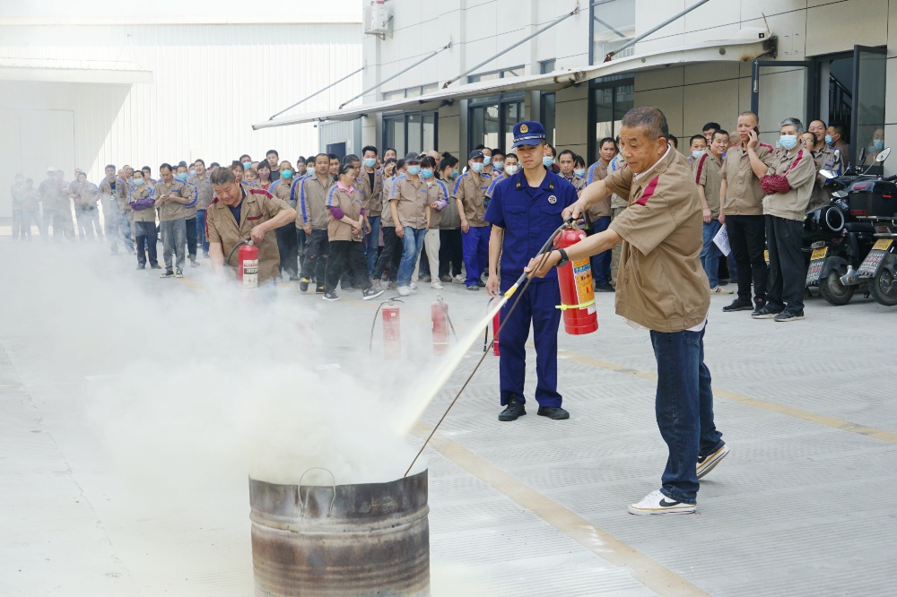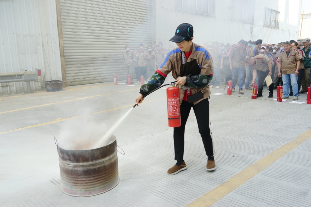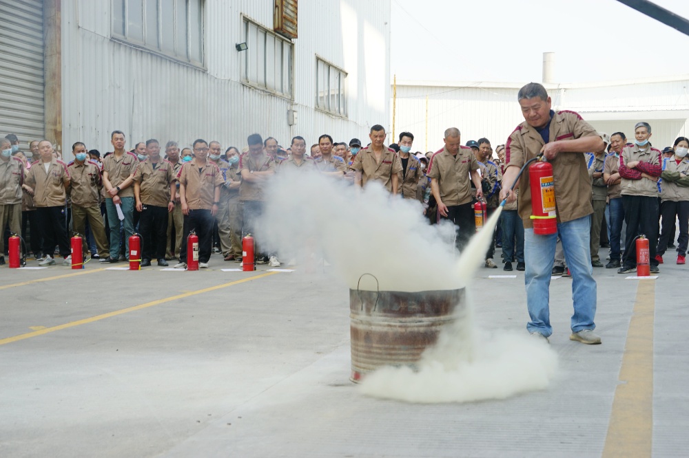 首先由車間主任、班組長等進行操作示范,隨后由新員工們輪流使用滅火器訓練,對不當操作進行現(xiàn)場糾正,力求使公司每位員工都能熟練掌握滅火技能。