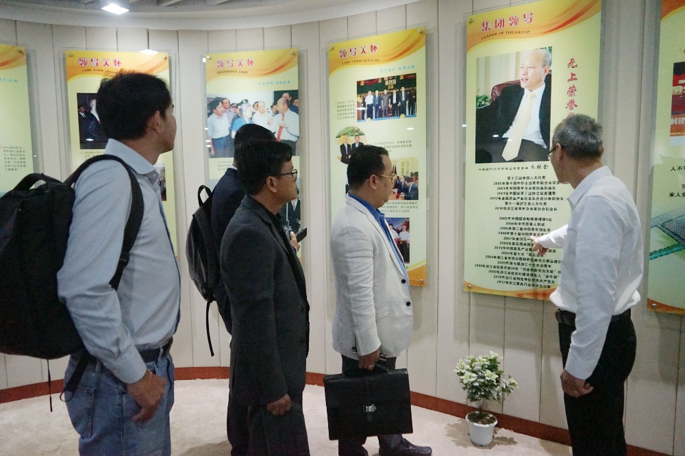 訪問團(tuán)一行首先來到卡森大廈,參觀集團(tuán)總部的展示廳,聽取朱書記對整個集團(tuán)發(fā)展的介紹。詳實(shí)的圖文資料、龐大的卡森產(chǎn)業(yè)和一步一個腳印的集團(tuán)建設(shè)歷程令訪問者驚嘆不已。