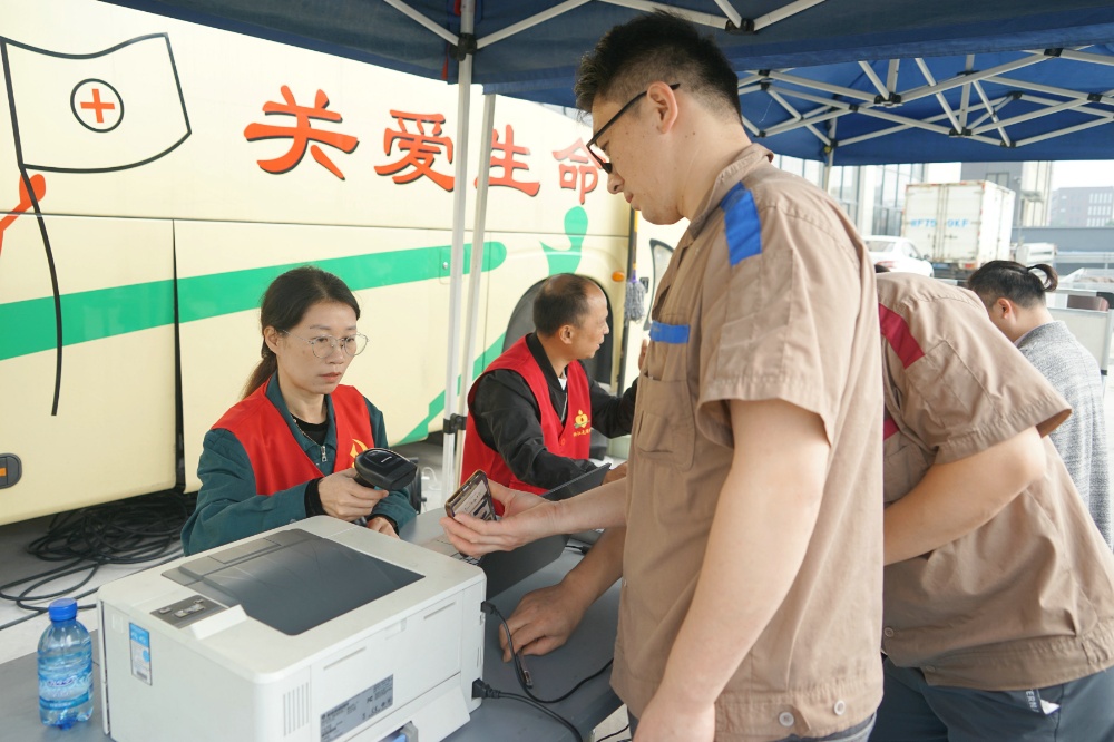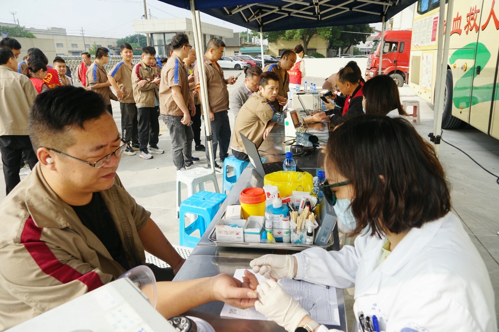 當(dāng)天上午,整個(gè)廠區(qū)洋溢著愛(ài)的暖流。只見(jiàn)大家在采血車(chē)前有序填寫(xiě)獻(xiàn)血登記表、測(cè)量血壓、征詢(xún)體檢、初篩采樣。隨后合格者上車(chē)獻(xiàn)血,奉獻(xiàn)愛(ài)心。