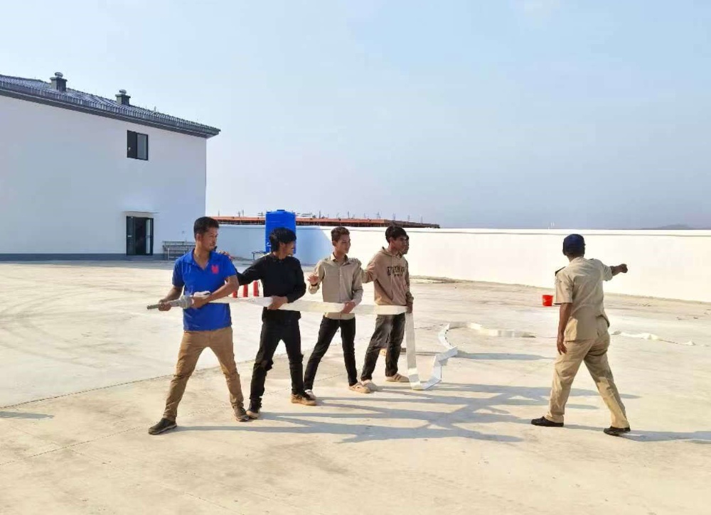 公司員工全部集結(jié)后,柬埔寨國公省消防局對消防安全知識——疏散逃生中注意的要點、如何報火警、火災(zāi)的預(yù)防、火場自救及逃生方法等進行了分析講解,并教大家如何規(guī)避安全事故及正確使用滅火器和出水帶。各部門派代表進行了干粉滅火器和水帶使用演練,使員工進一步正確掌握滅火要領(lǐng),快速撲滅著火物。